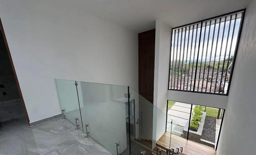 Amplia residencia en Lomas de Cocoyoc con doble altura en vestíbulo, alberca equipada y jacuzzi. Cochera techada y múltiples terrazas en ambas plantas.