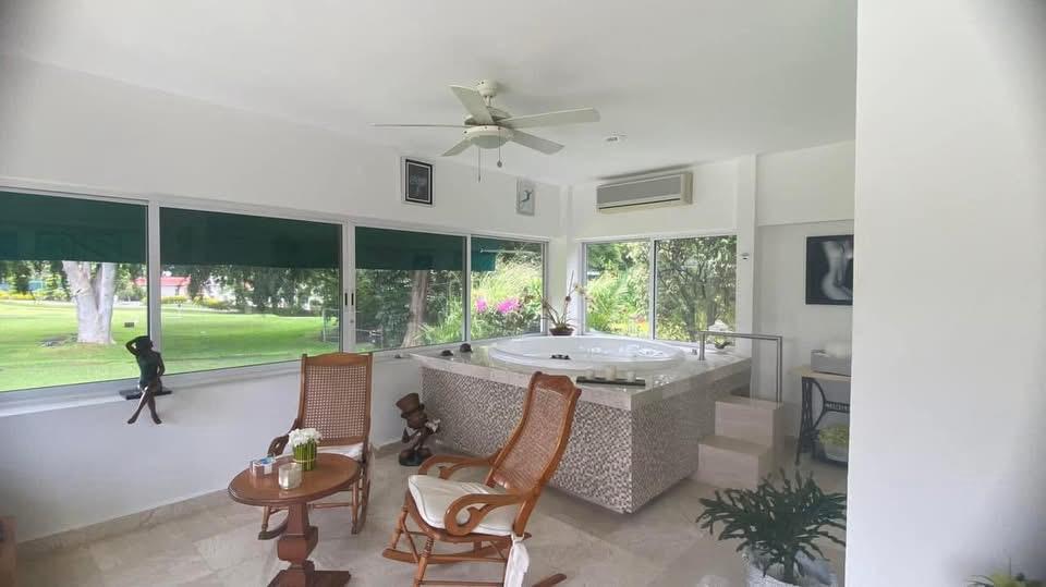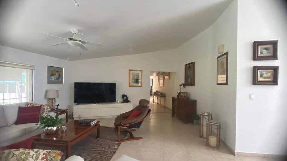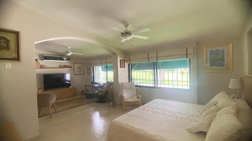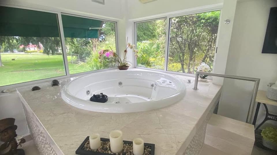 Casa de un solo nivel con vista al campo de golf en Lomas de Cocoyoc. Escrituras públicas y pagos al corriente. Incluye bungalow independiente con jacuzzi. Paneles y celdas solares para baños, cocina y alberca.